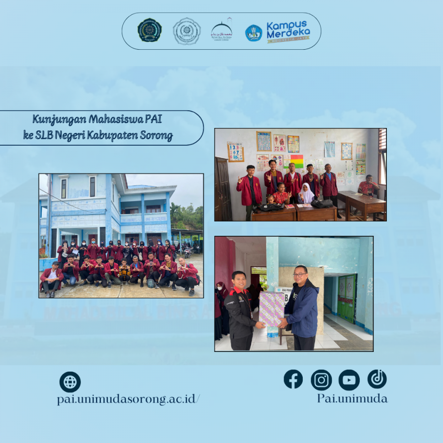 Sorong. Kamis, 18 Januari 2024. Sebuah kegiatan kunjungan yang berkesan telah dilakukan oleh mahasiswa Semester 5 Program Studi Pendidikan Agama Islam (PAI) dari Kampus Universitas Pendidikan Muhammadiyah (UNIMUDA) Sorong ke Sekolah Luar Biasa (SLB) Negeri Kabupaten Sorong. Kunjungan ini merupakan bagian dari program pengembangan pemahaman mahasiswa terhadap berbagai realitas pendidikan, khususnya dalam konteks inklusi bagi anak-anak berkebutuhan khusus. Tujuan dari kegiatan ini adalah untuk mengetahui bagaimana pembelajaran yang diberikan kepada anak berkebutuhan khusus dan juga sebagai salah satu pemenuhan tugas mata kuliah “Pembelajaran PAI untuk ABK”.