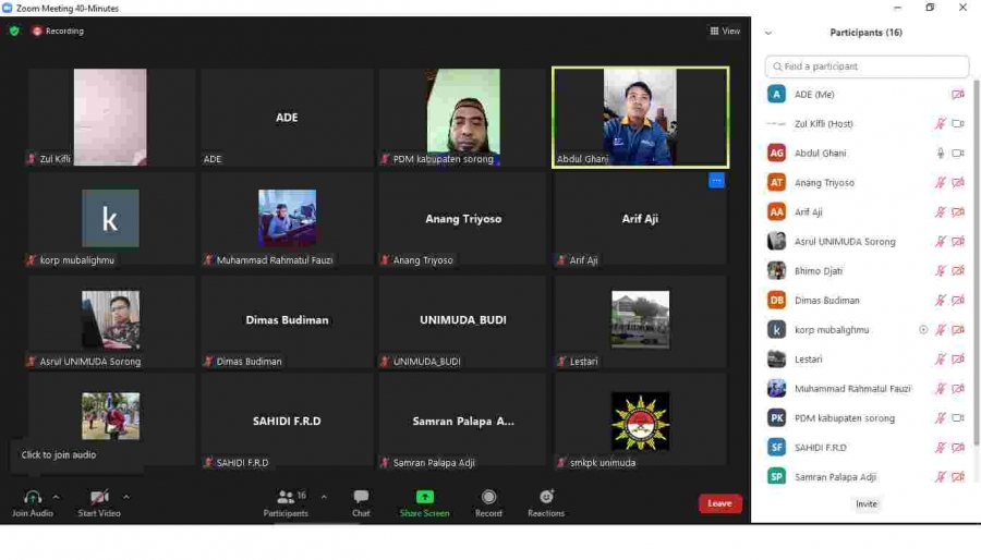 Kamis (31/03/2022) Korps Mubalig Muhammadiyah Kabupaten Sorong menyelenggarakan pembekalan Ramadhan secara daring untuk menyambut bulan suci Ramadhan. Kegiatan ini dimaksudkan sebagai pembobotan untuk para mubalig sebelum nantinya akan disebar ke beberapa titik Masjid se Kabupaten Sorong dalam rangka menyampaikan dakwah di bulan suci Ramadhan.